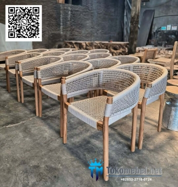 Set kursi cafe jati kombinasi anyaman tali ini merupakan desain terbaru untuk melengkapi cafe atau resto anda, kursi makan estetik ini juga sudah di pakai untuk melengkapi ruang isitrahat di beberapa lapangan padel di jakarta dan sekitarnya.